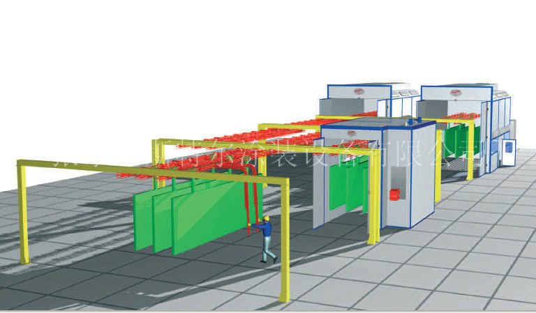傳輸機給出產生方式工藝工藝流程圖實施合理合法的構思構思,過渡各產生方式步驟(前正確處理、噴粉室、噴油漆室、固定烘道等),以減少施工相關人員,減短產生方式時間間隔,提產生方式工作效率。