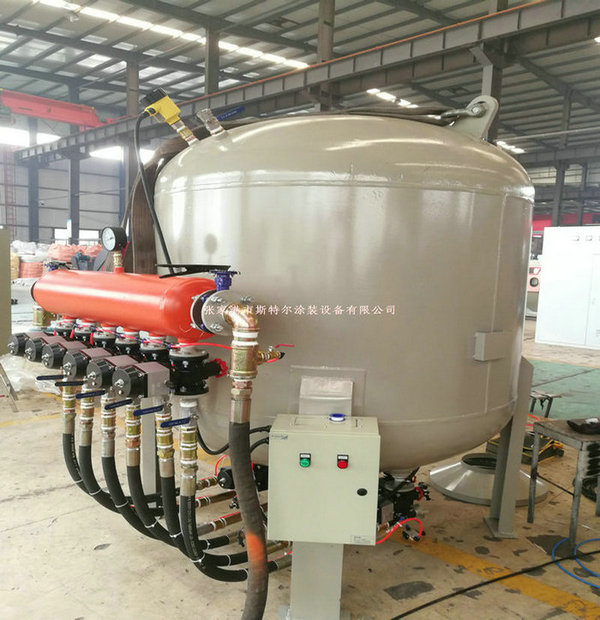 我公司研制的各型加壓式噴砂機,吸取了各家之長,在結構和配套上做了較大地改進,同時形成了固定的備件、易損件供應市場,便于掌握,使用和維修都很方便。具有除銹效率高,磨料和能源消耗低,并具有安全可靠、操作方便等特點。