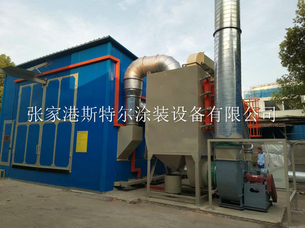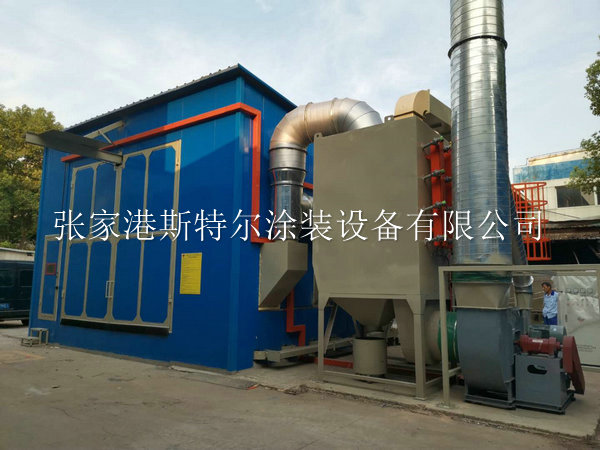 ●噴砂房內部尺寸(長度 7米×寬度5米×高度4米),房體骨架由型材制作而成,內部敷設專用噴砂房橡膠板作為防護,中間層為鋼板,最外層墻體敷設巖棉板進行消音及美觀; 除霧器: